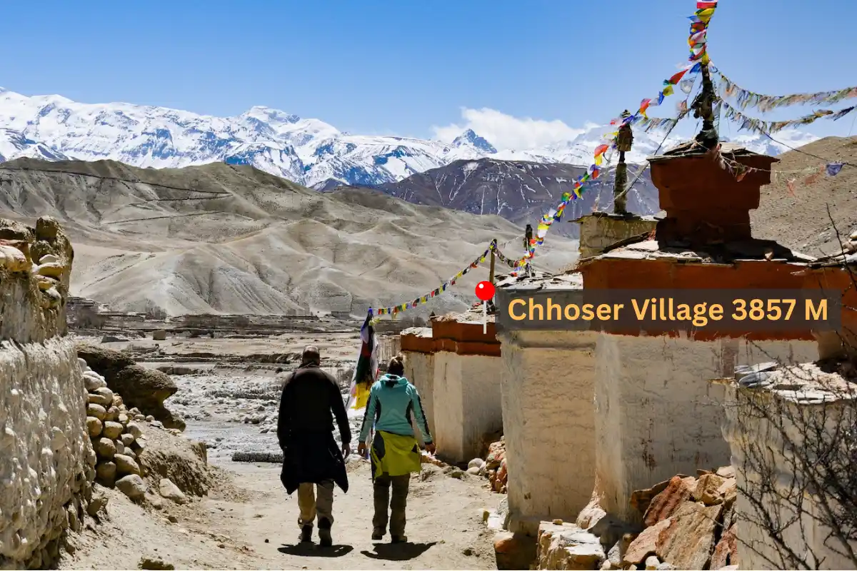 We begin our journey south, bidding farewell to the hidden kingdom. The ride back offers a new perspective on the majestic landscapes we’ve traversed. The route will once again showcase the dramatic cliffs and vast valleys of Mustang before we descend back to the greener, more fertile terrain of Lower Mustang. Our destination is the charming and clean village of Marpha, where we can celebrate our journey with some local apple products.